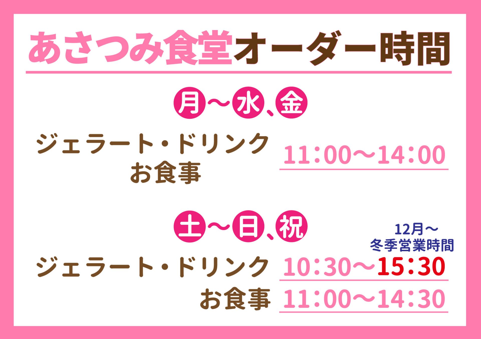 ◆12月以降のジェラートオーダー時間(土日祝日)
