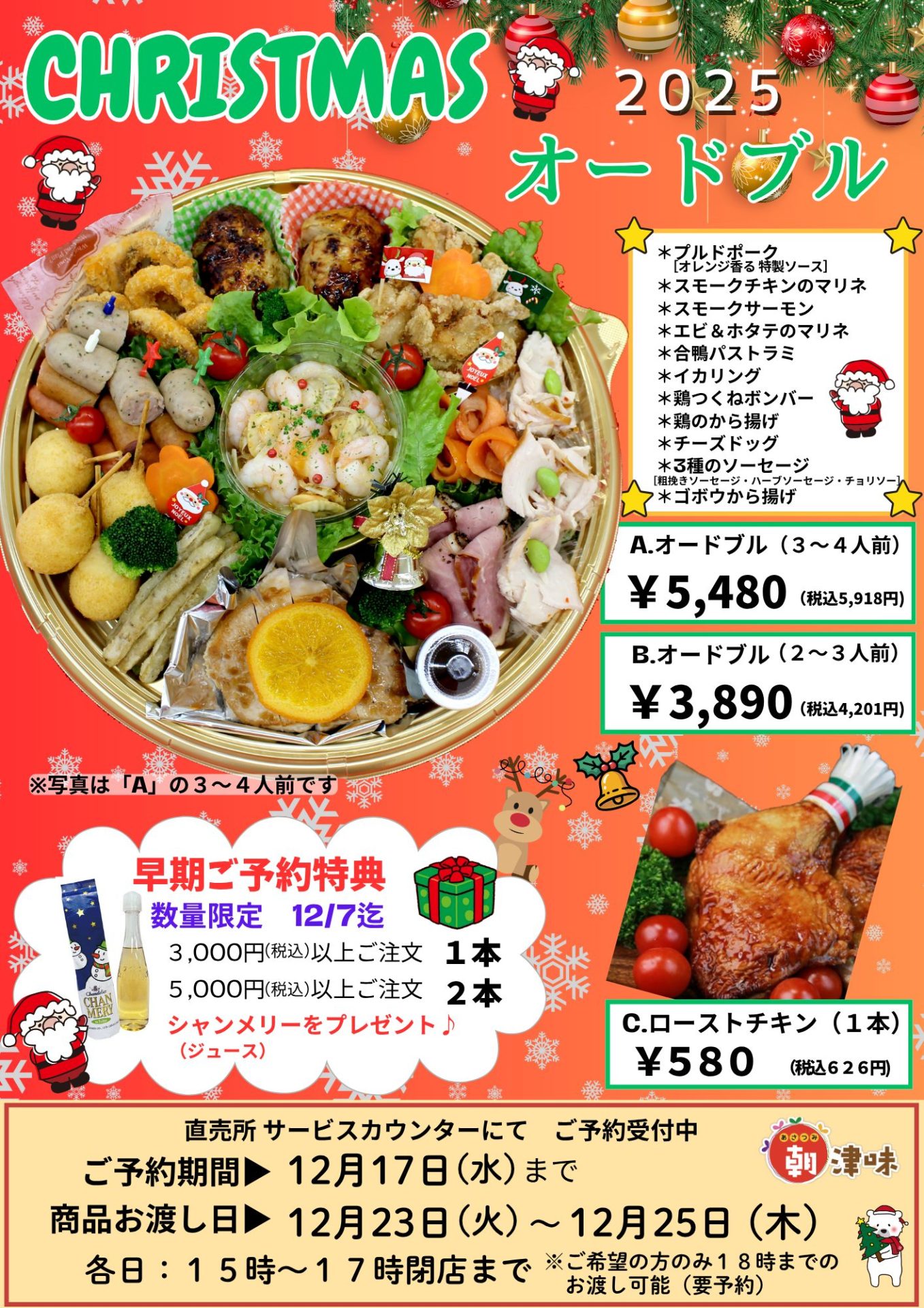 朝津味特製 クリスマスオードブルの予約受付を開始いたしました。